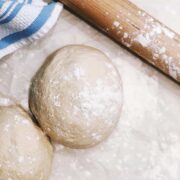 Homemade Aged Pizza dough is an amazingly easy thing to make at home and it freezes so well. It tastes so much better than just made pizza dough and all you have to do is let it sit.